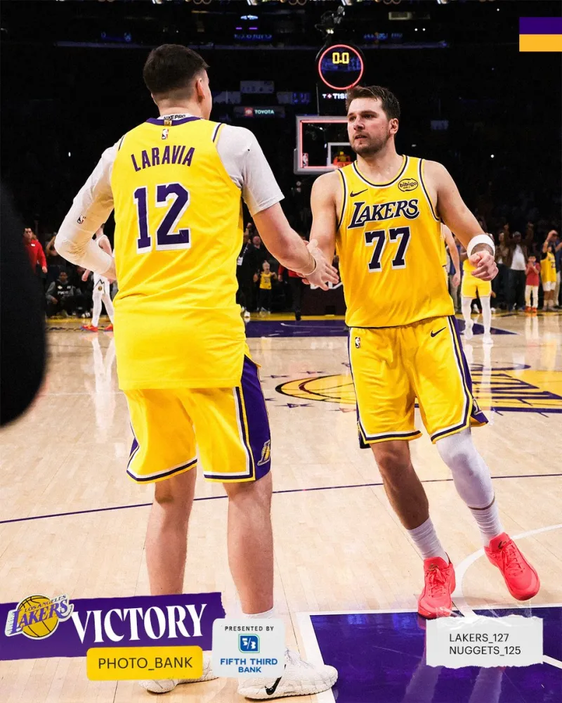 今日,湖人社媒回顾昨日战胜掘金比赛中东契奇与队友庆祝胜利的瞬间,并配文:“那场比赛太精彩了!”
